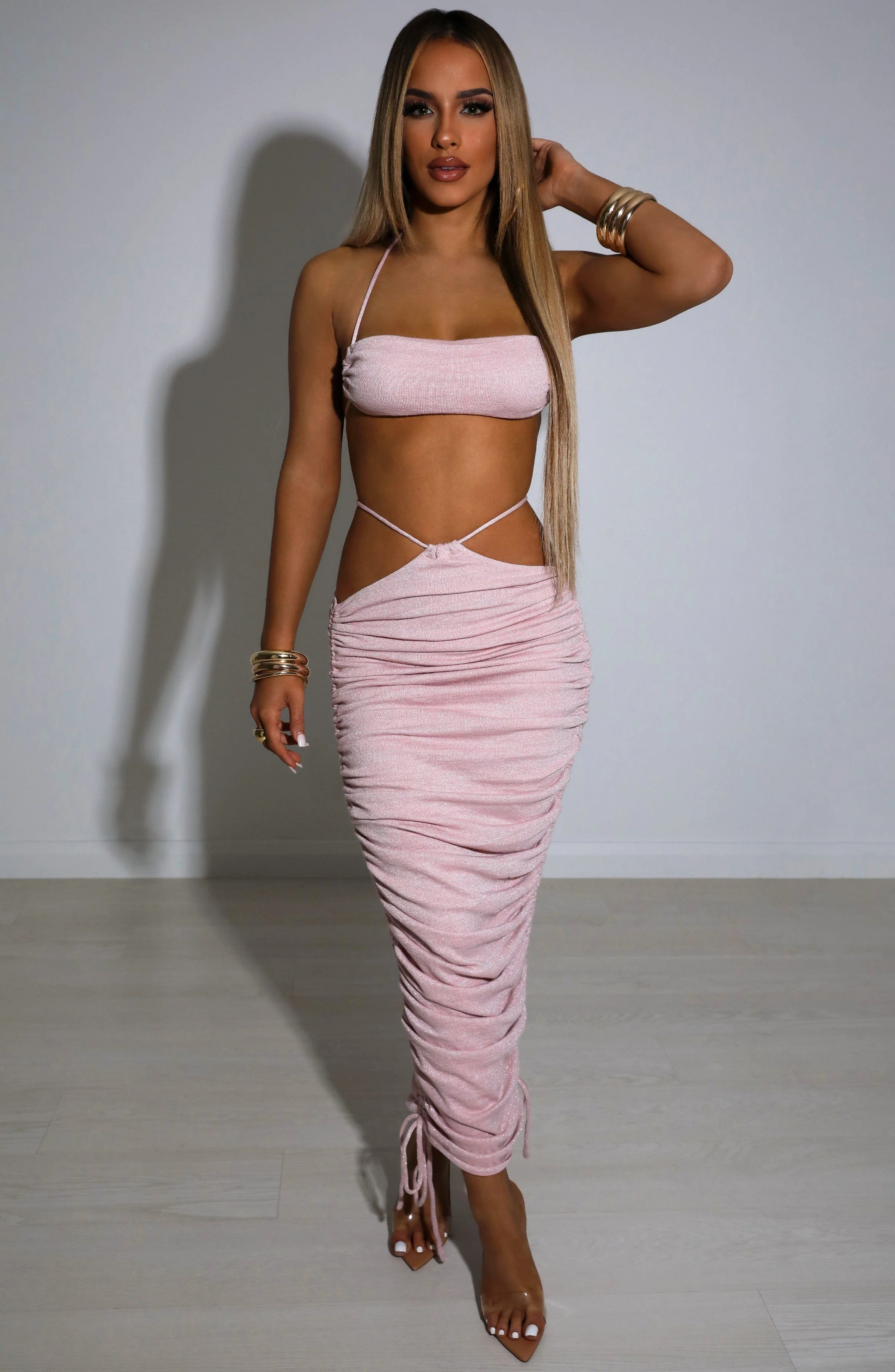 Valencia Maxi Skirt - Baby Pink Sparkle—
